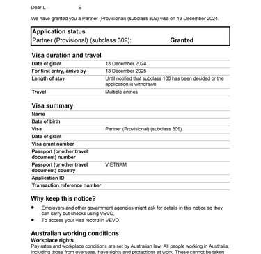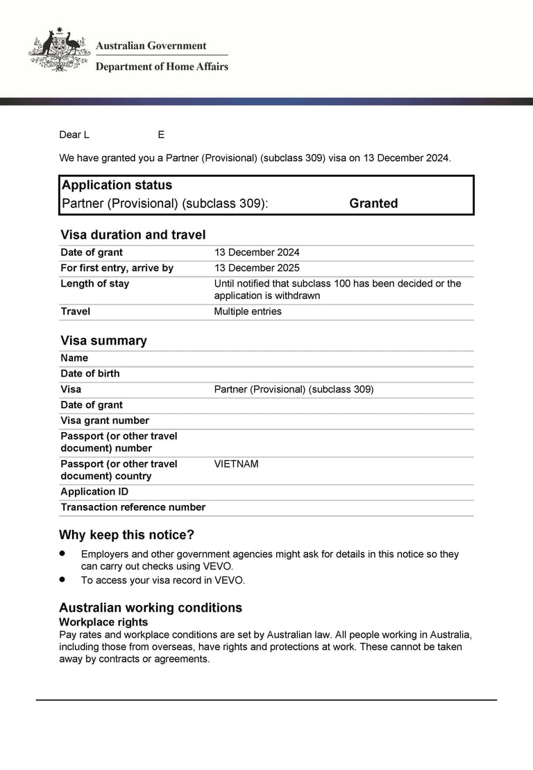 Cuối cùng, sự kiên trì đã được đền đáp. Chị P và con đã được cấp Visa 309 và chính thức đoàn tụ cùng anh S tại Úc.