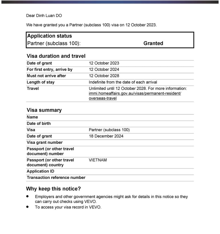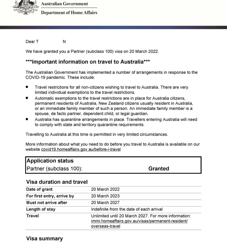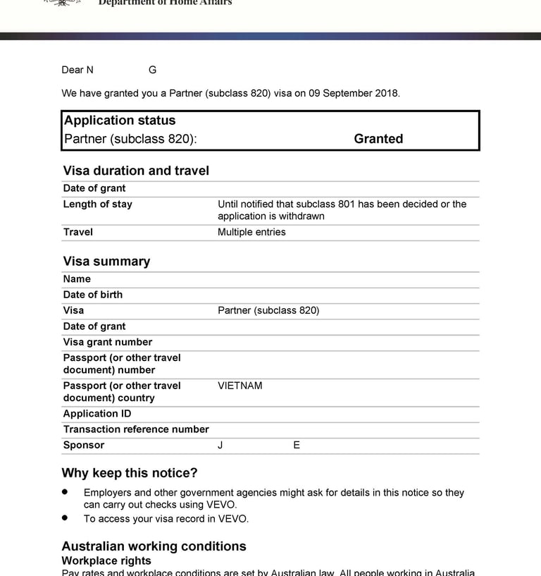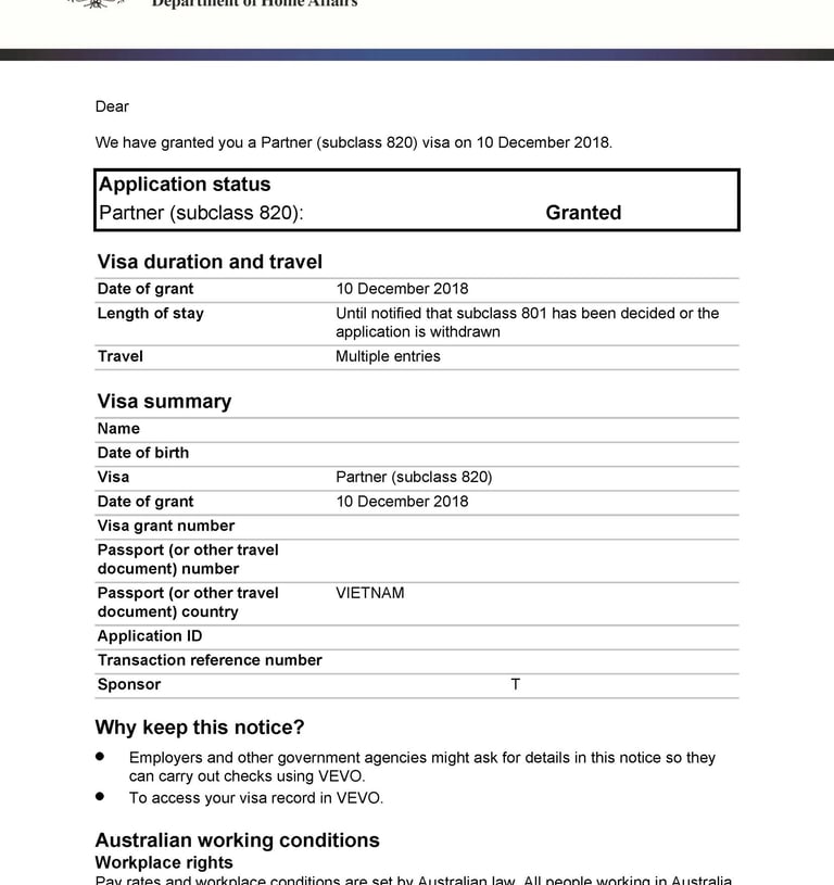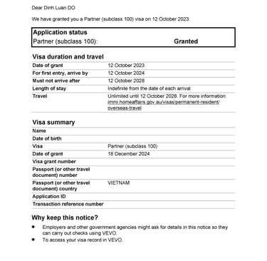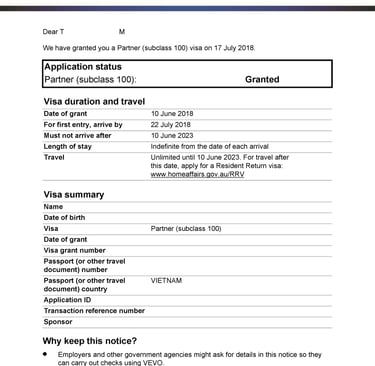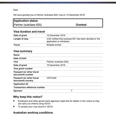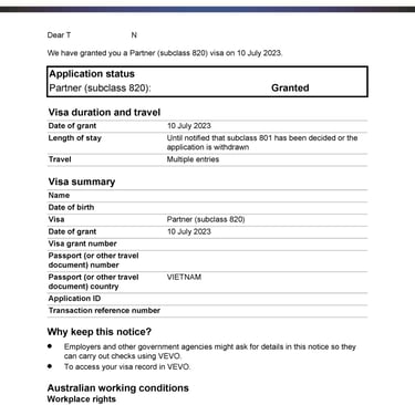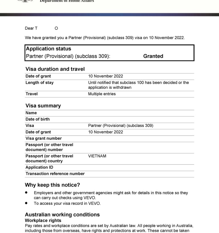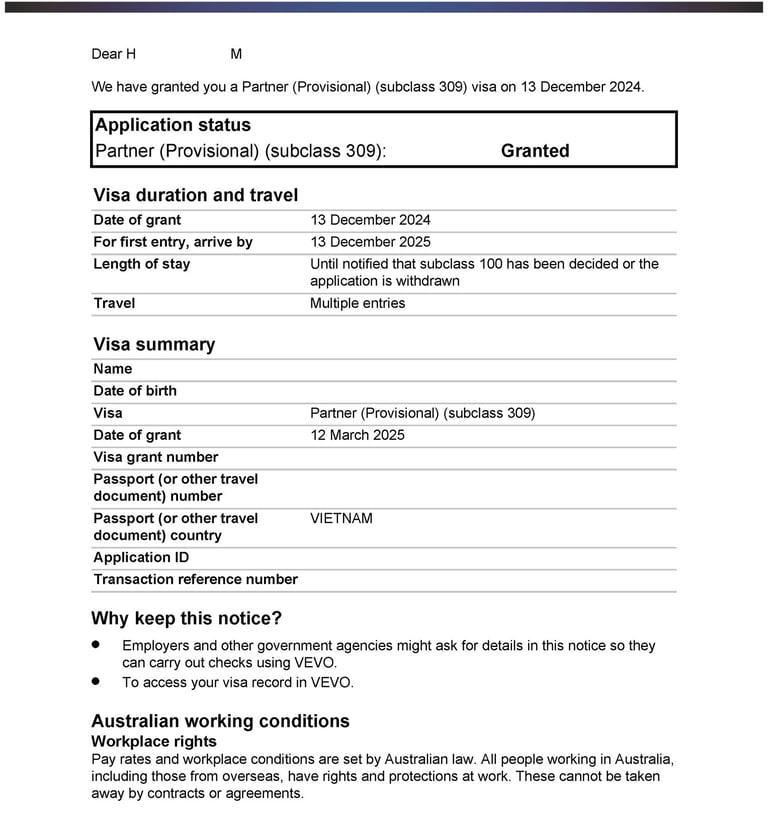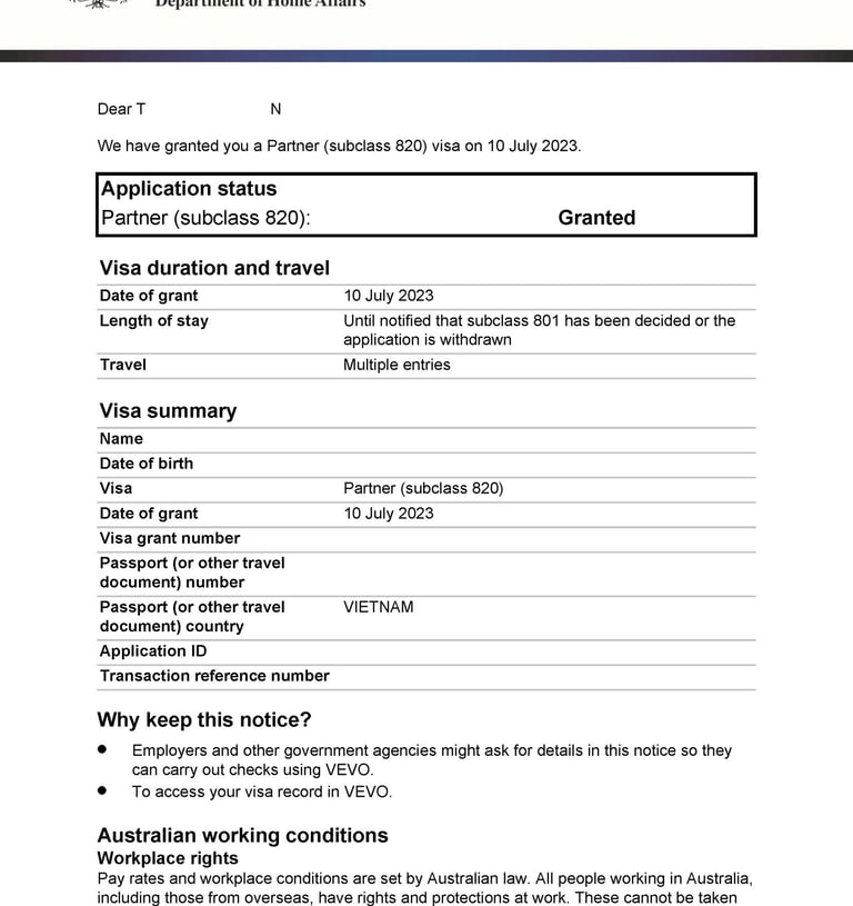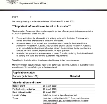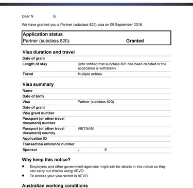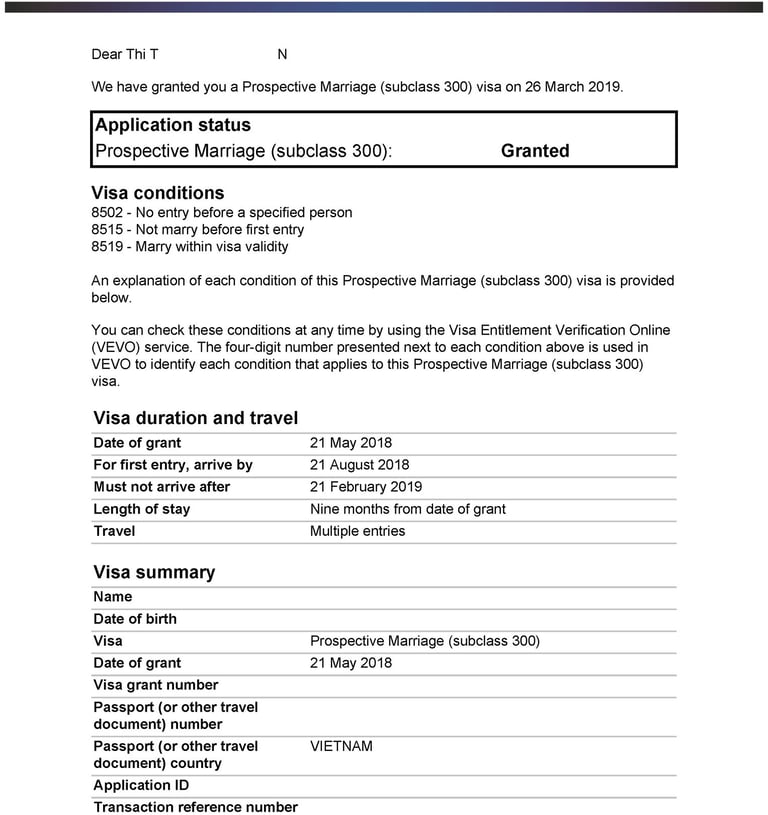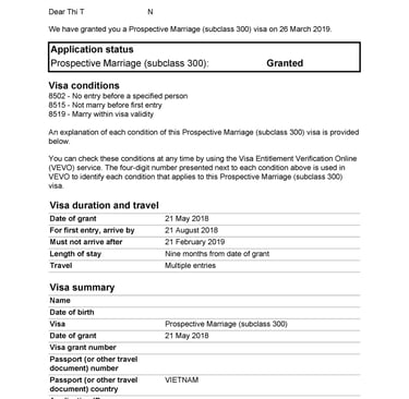 Chị H tình cờ du lịch tại Úc và gặp anh Z. Hai người nảy sinh tình cảm, quyết định sống chung và liên hệ Smigration để được tư vấn kết hôn, nộp hồ sơ visa 820 tại Úc. Sau 8 tháng, chị H đã được cấp visa.
